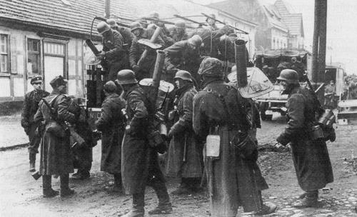 Grupo antitanque de paraquedista no Fronte Oeste, armados de Panzerschrek e Panzerfaust